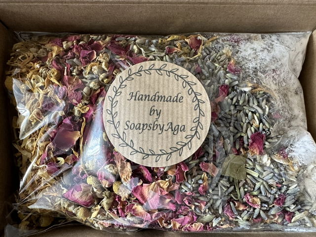 Lavender, Chamomile, Calendula, Rose Petals & Buds, Coconut Milk Powder, Oats