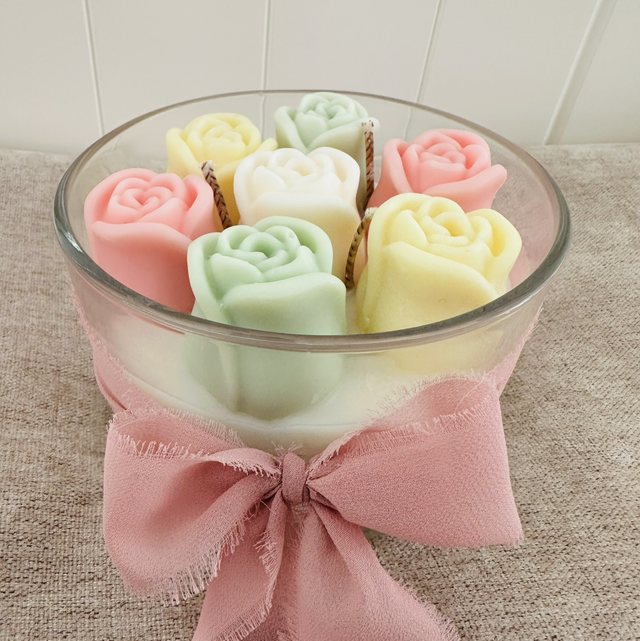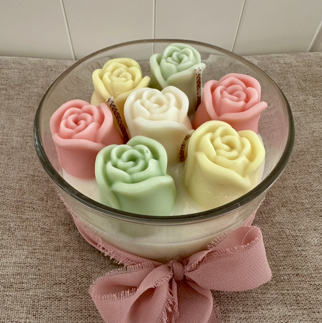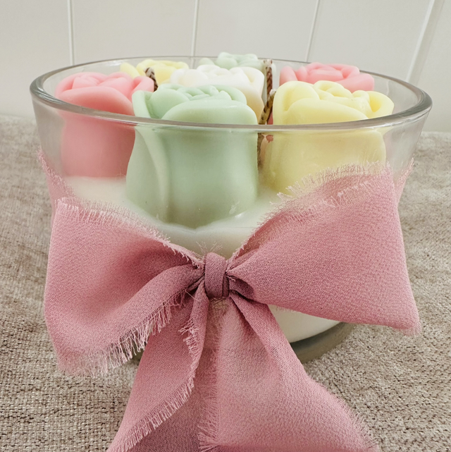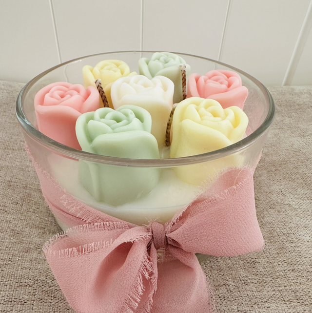 Infused with a light magnolia scent, it offers a soft, fresh floral aroma that gently fills the room. Topped with a delicate flower bouquet design made from wax, this candle is both a charming décor piece and a soothing sensory experience.