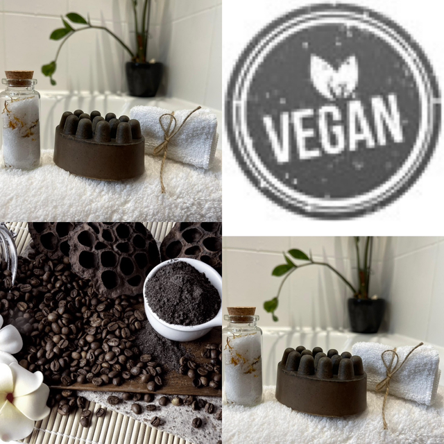 Ingredients: soap base, ground coffee, ground cinnamon.